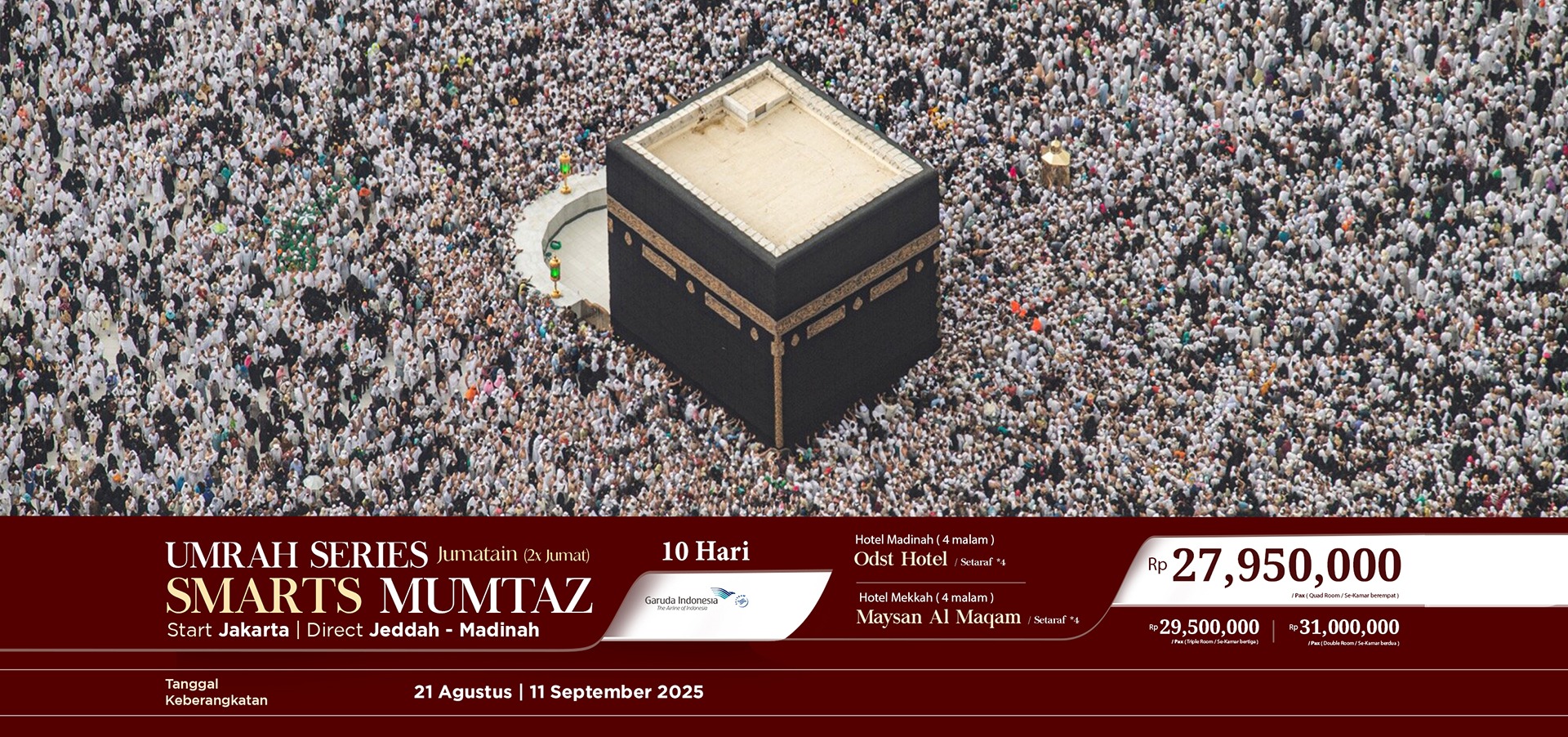 perjalanan spiritual menjadi lebih praktis, nyaman, dan penuh keberkahan. Jangan tunda lagi, wujudkan niat suci Anda menunaikan ibadah umroh dengan fasilitas terbaik dan harga yang terjangkau.